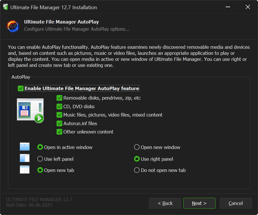 Next page of UFM Installer is the Ultimate File Manager Autoplay Page.
